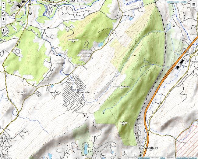 Schunemunk Mountain has two main ridges that run parallel to one-another. Here is a view of the northwest ridge from the southeast ridge. You can really see the extent of exposed rock well here.